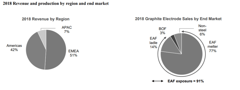 Over 2018, Graftech sold almost half of electrodes in EMEA, 42% in America and the remainder in APAC. Its 10 largest customers represent 38% of sales, while the next 10 represent 17%