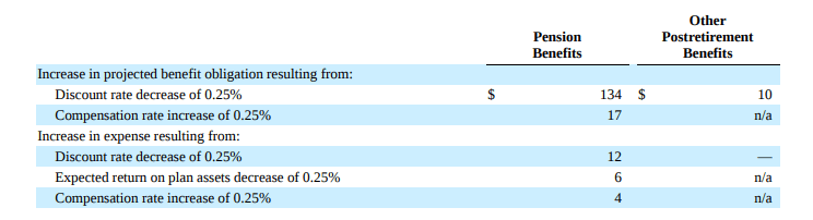 Another aspect that could worry investors is that VLO’s pension fund is currently underfunded, as the table below shows. Moreover, interest rate sensitivity shows that a decrease in interest rates provides some headwinds in terms of incremental expenses.